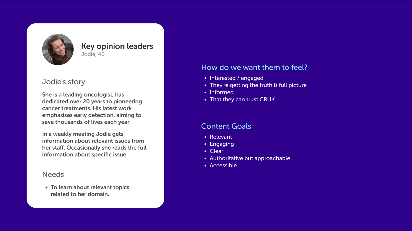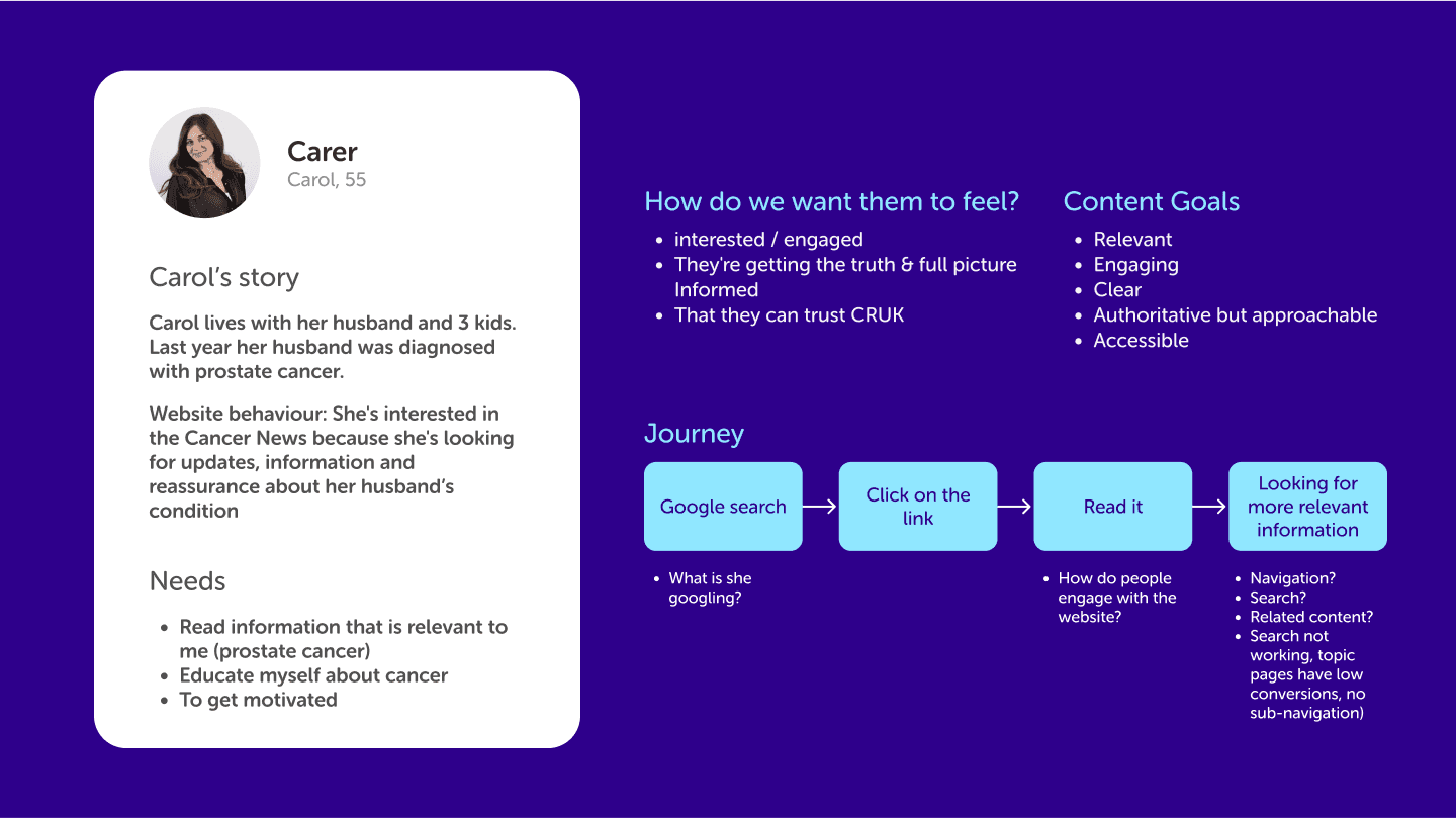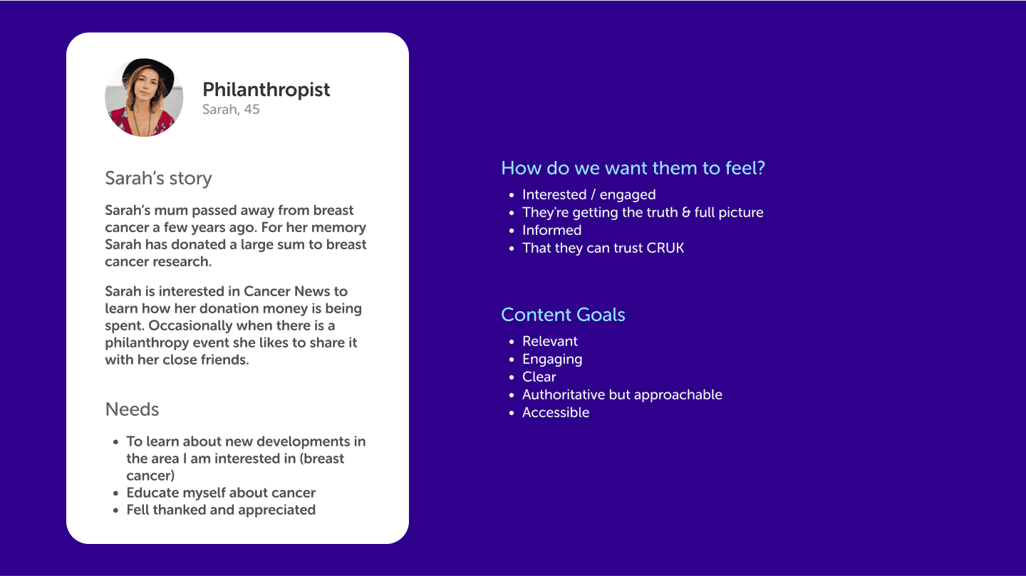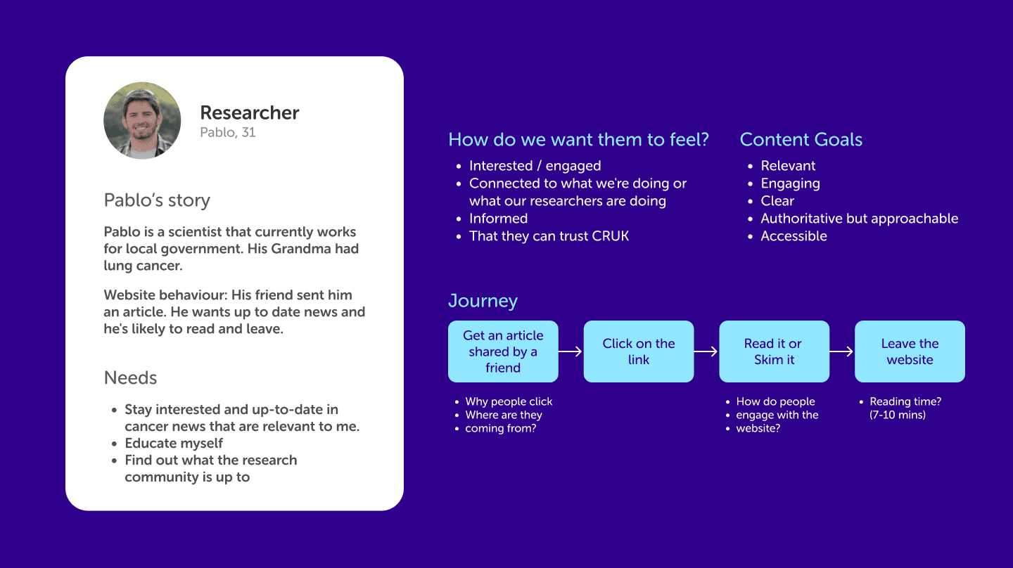 Cancer Research UK’s news platform is a key hub for sharing critical updates on research, public health initiatives, and patient stories. It targets diverse audiences—researchers, patients, and donors—each with specific needs. The site required an overhaul to offer a streamlined, accessible, and engaging experience that aligns with CRUK’s mission.