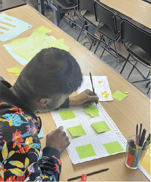 2. Co-Design Approach: In this phase, co-design sessions were conducted to ensure that the voices of those with lived experience shaped the solutions being created. Engaging young Black people in the design process allowed for more equitable design outcomes, focusing on what mattered most to them. The sessions aimed to break down power imbalances between designers and users, ensuring participants felt heard and valued. These sessions were critical for generating ideas that would later be prototyped and tested.