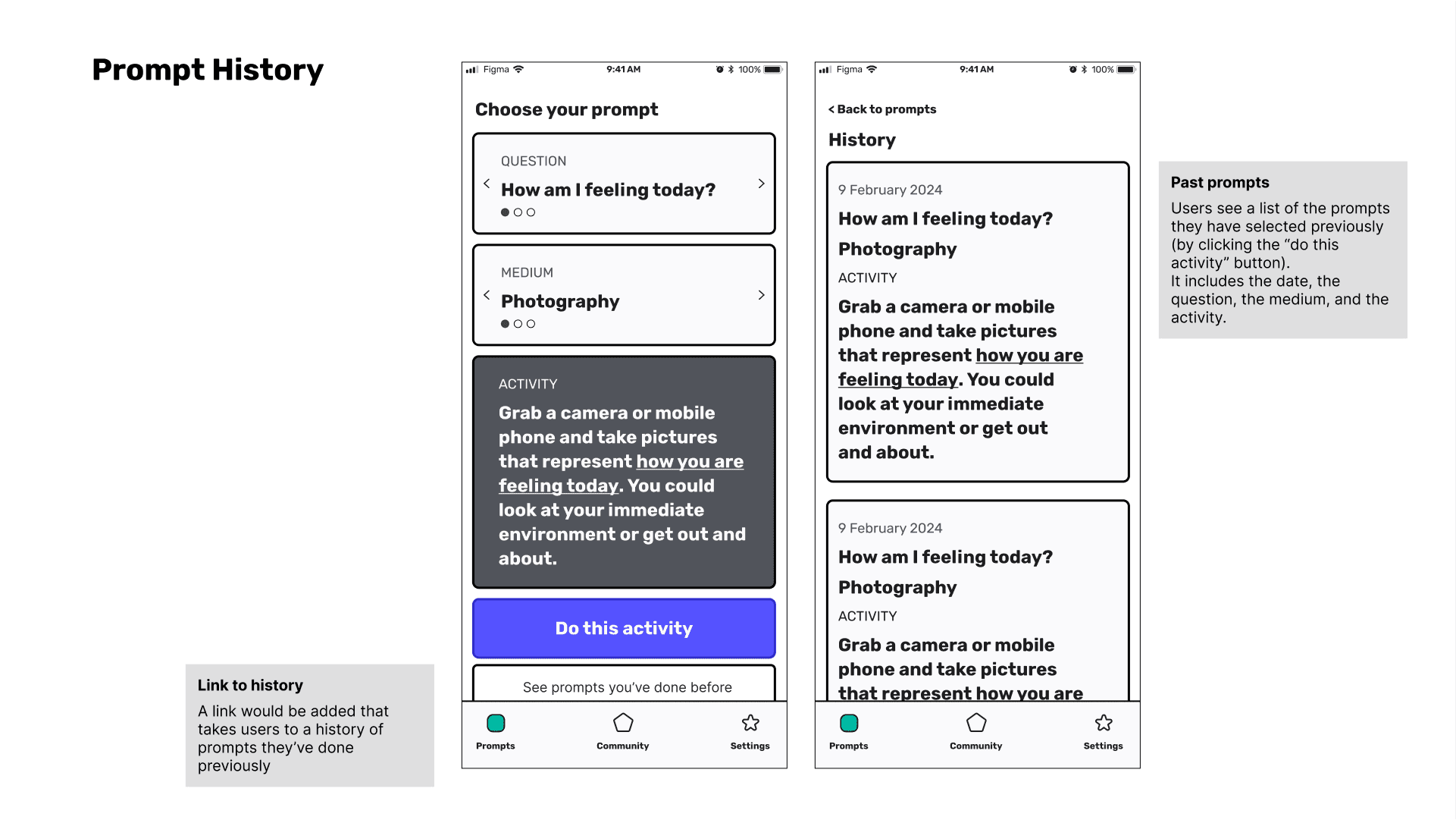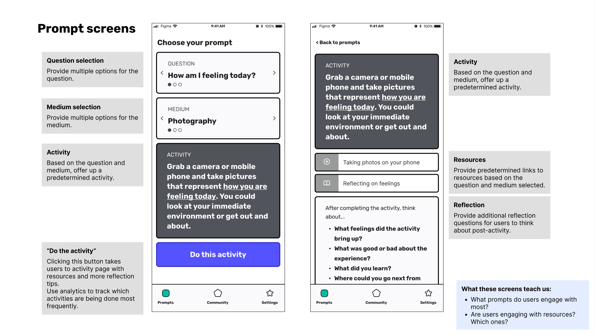 6. Implementation and Iteration: In this stage, the hybrid app was developed and launched as a minimum viable product (MVP). The app incorporated the key features designed in previous phases, such as creative prompts and self-reflection tools. After the MVP launch, further user testing and iterations were carried out to continuously improve the digital platform. This phase emphasized the importance of launching early to gather real-world data for ongoing improvements.